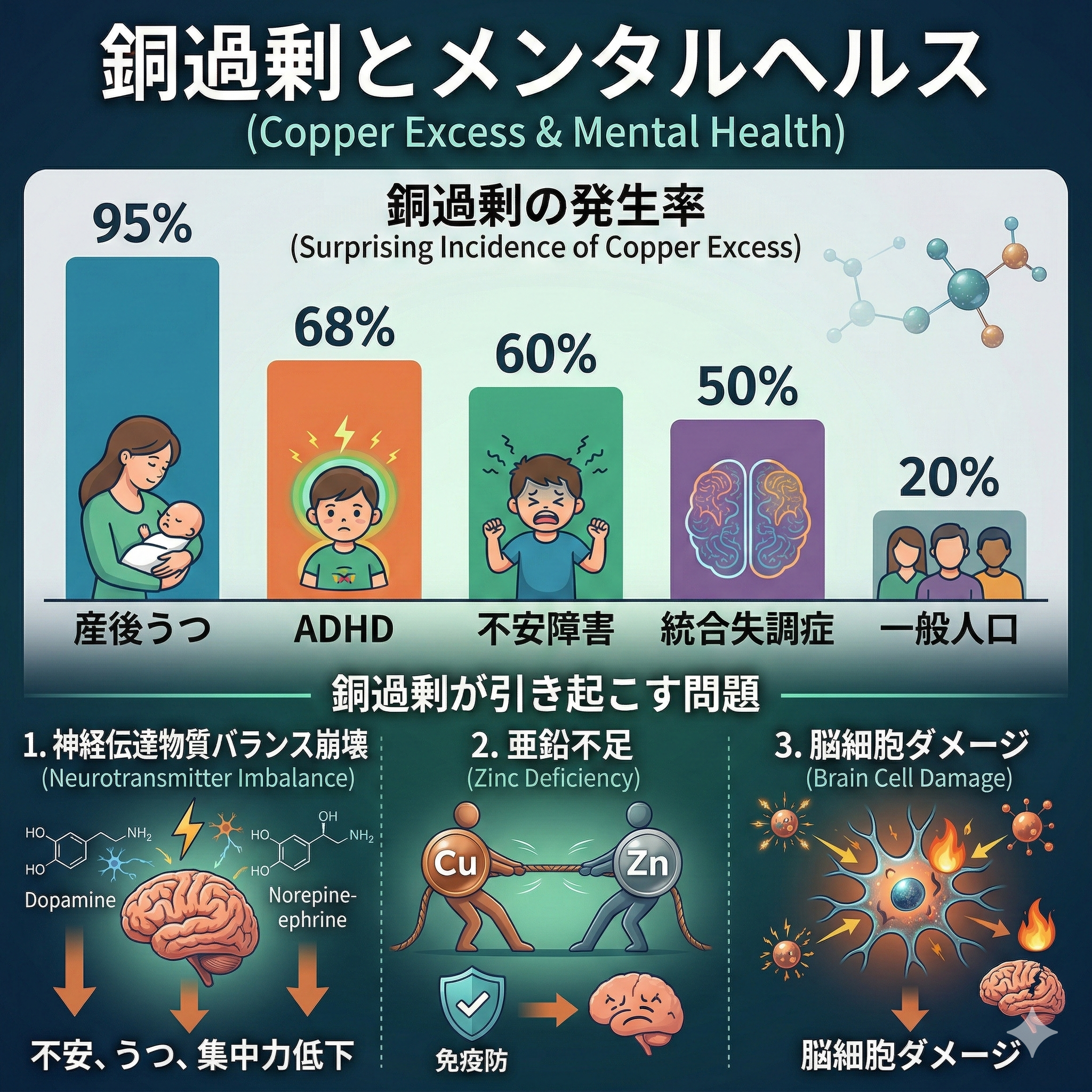 精神疾患メンタルヘルスと深く関わっているのにあまり注目されていない栄養の問題が銅過剰です。 銅は体に必要な必須ミネラル…