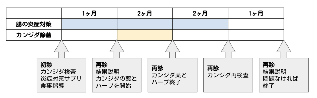 - カンジダ治療薬は終了し、腸の炎症を抑えるサプリメントを継続