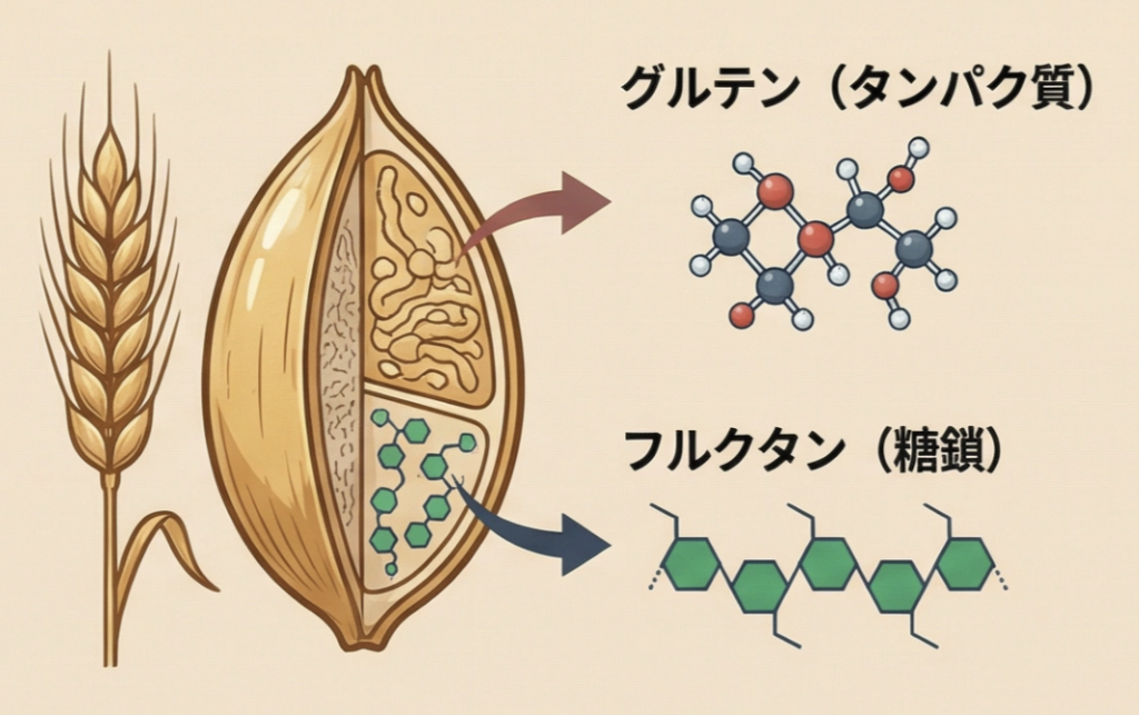 重要なのは、グルテンとフルクタンは同じ食品に入っていることだ。
