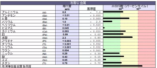 当院では、ドクターズデータ社(米国)の毛髪ミネラル検査を採用しています。検査会社によって基準値が大きく異なるため、適切な検査会社の選択が重要です。例えば、水銀の基準値は、ドクターズデータ社では400ppb以下ですが、日本の検査会社では2183〜6946ppbと大きな差があるため、国際的に信頼性の高い基準値を持つ検査会社での測定が不可欠です。
